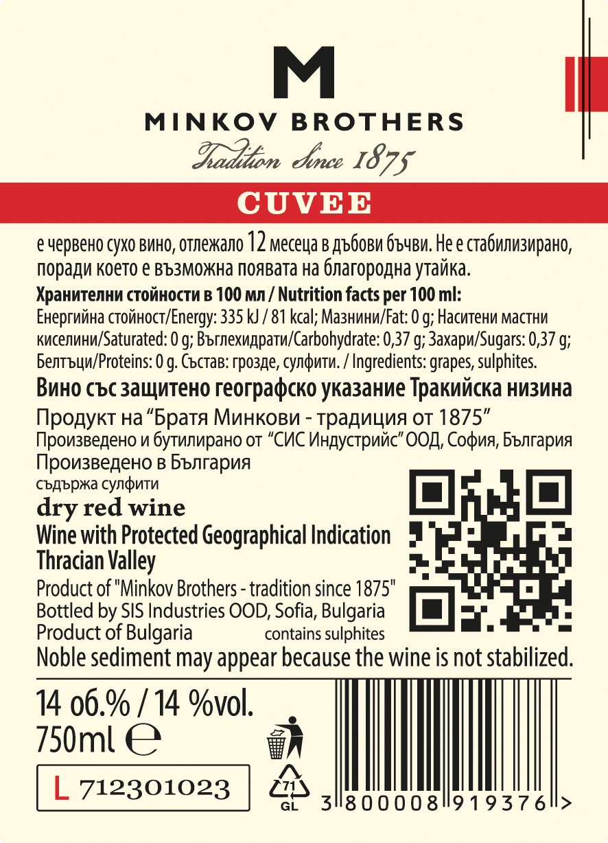 - Тип: сухо червено вино