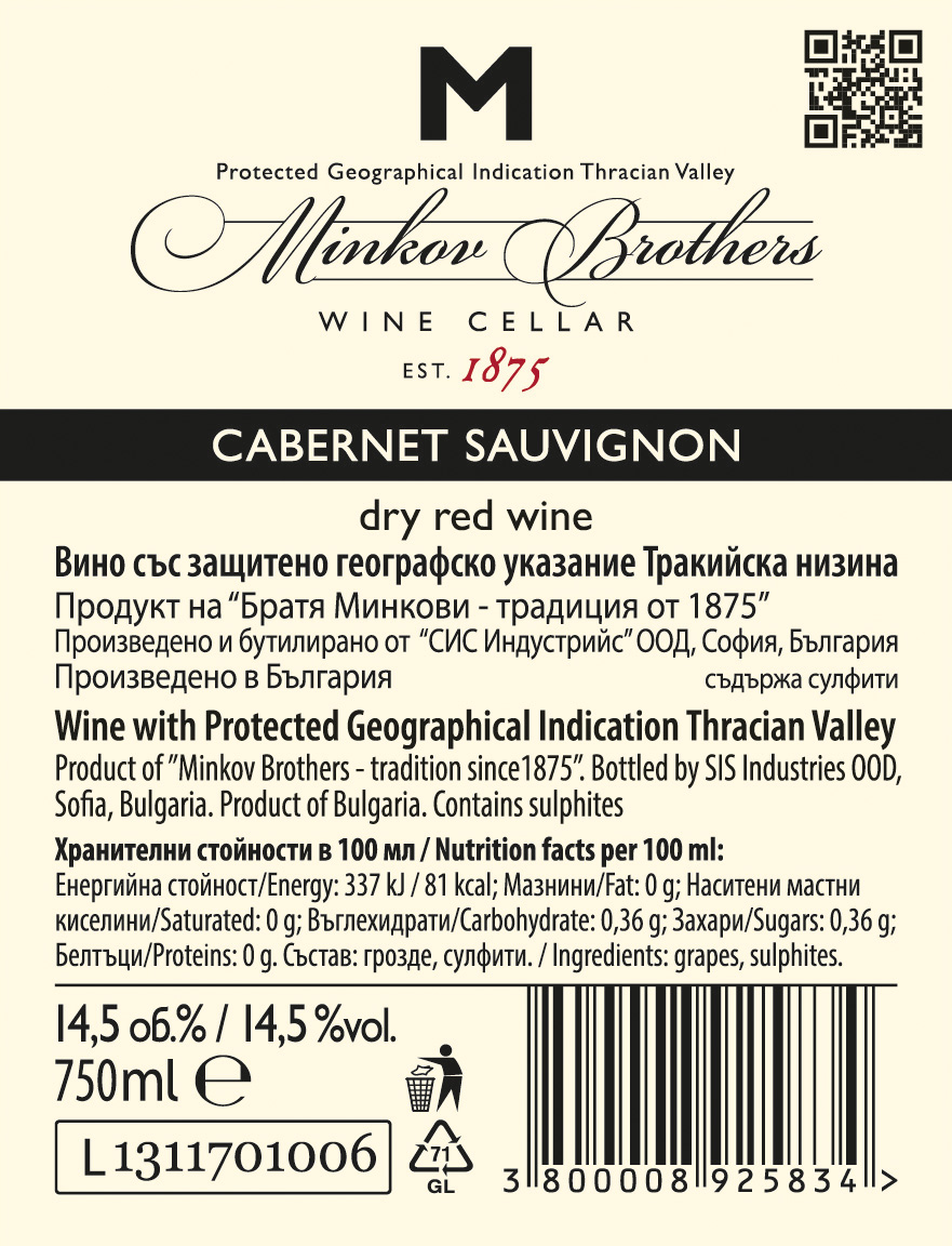 - Тип: сухо червено вино