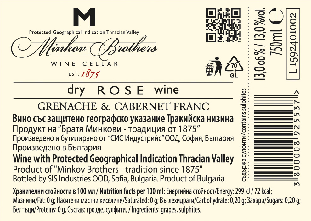 - Произход: собствени лозя, местност на лозовите масиви: Терзийско