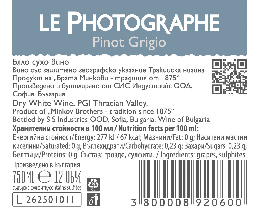 Сомелиерско предложение: Рибни ястия – сьомга, рибни супи, ястия с гъби – ризото от гъби, пуешко, патешко, гъше месо с леки бели сосове, заешко – леко приготвено