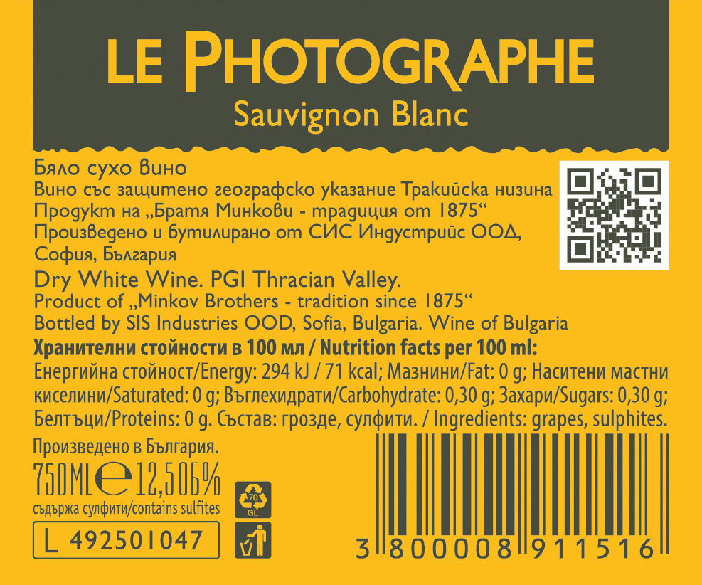 Вкус: Много елегантен, с приятна свежест, с усещане за минералност и дълго въздействие; с освежаващ цитрусов финал